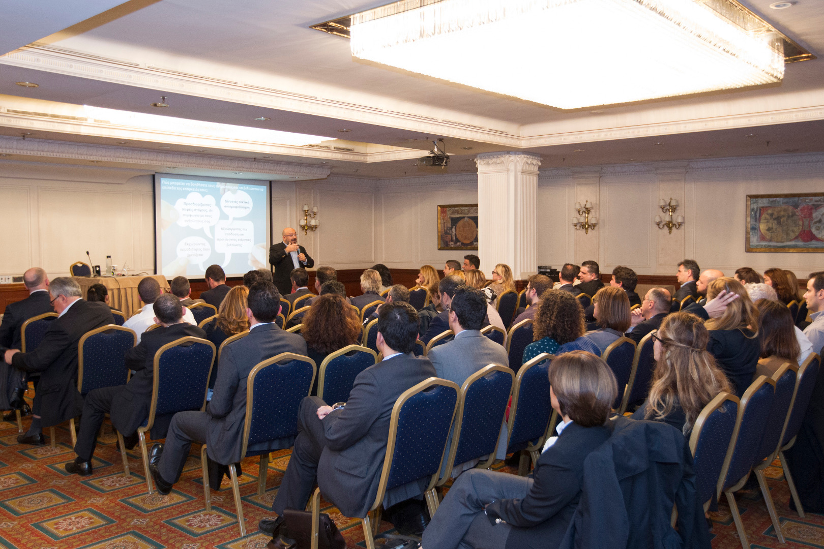 Πάνω από 100 στελέχη της ελληνικής ασφαλιστικής αγοράς, μέλη και φίλοι του Συνδέσμου, είχαν την ευκαιρία να παρακολουθήσουν την ιδιαίτερα ενδιαφέρουσα παρουσίαση του κ. Μανούσου Μαροπάκη, πιστοποιημένου εκπαιδευτή του Harvard Business Publishing, πάνω στην έννοια και τις βασικές παραμέτρους της διοίκησης και τη σχέση της με την εργασιακή ωριμότητα και να συμμετάσχουν ενεργά στη συζήτηση που ακολούθησε με εύστοχες ερωτήσεις.
